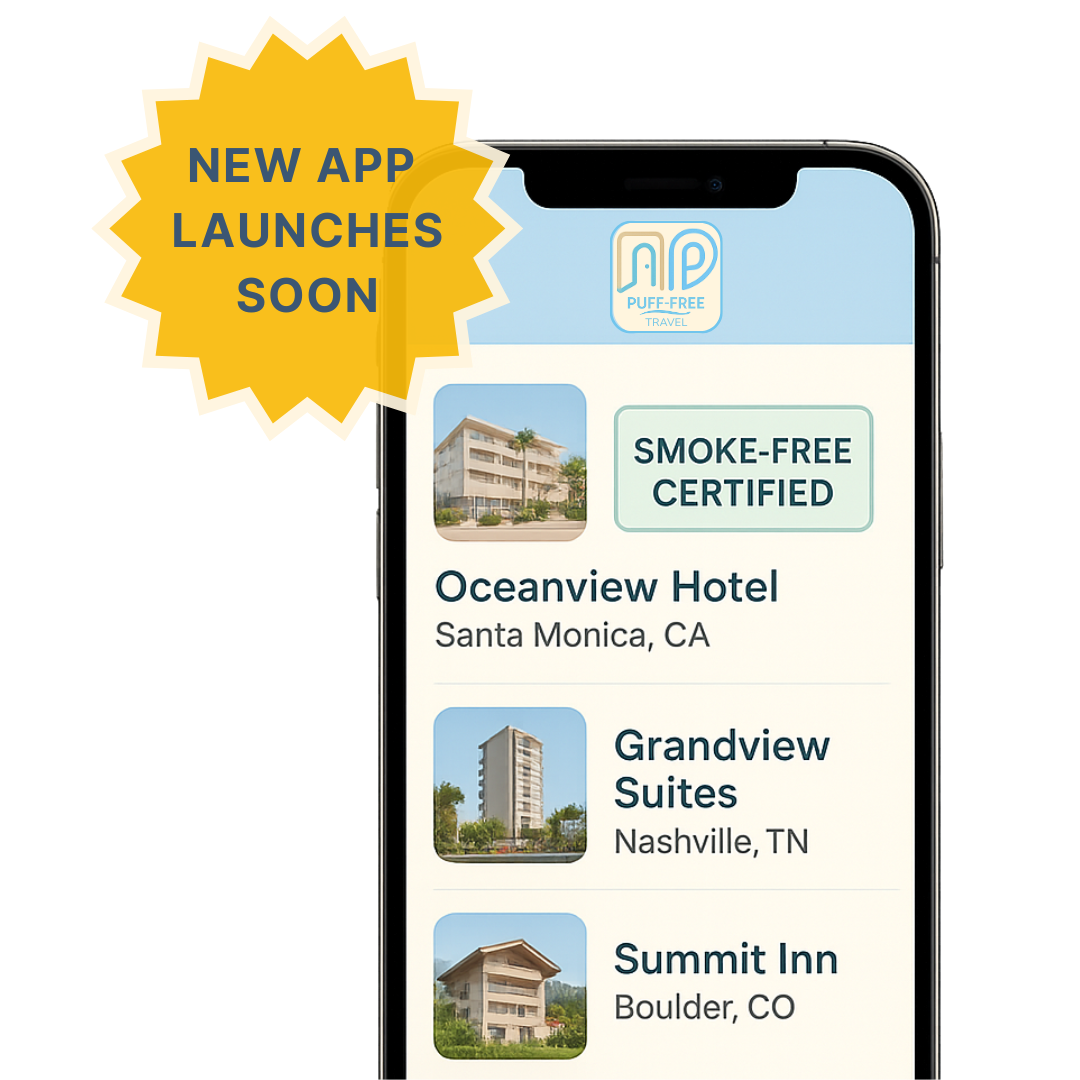 Puff-Free Travel is a new community-driven app that helps travelers find and review smoke-free hotels & properties around the world. Our goal is to create healthier, cleaner air experiences for guests and help hotels improve transparency and comfort.