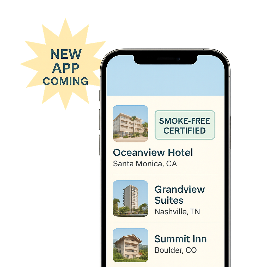Hotels that meet our clean-air standards undergo verification through guest feedback, data checks, and direct collaboration with our team. Verified partners earn the Smoke-Free Certified badge visible on their listings.